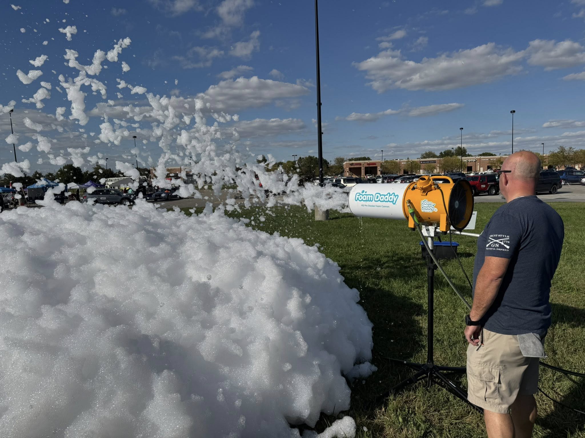 You don't need to bring anything! We handle all the setup, teardown, and maintenance. Just provide a clear, flat, and safe surface for our foam cannons.